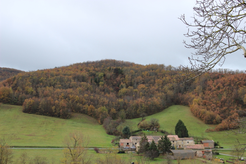 A l’atelier, côté océanique. En face, les Pyrénées. Mais on ne les voit pas. Ils se cachent derrière les plis des piémonts. Les gelées ont été fort discrètes cet automne. Alors les feuillus sont encore tout chevelus. Ils nous ont régalé de leurs couleurs. Lever les yeux de l’ouvrage, c’est prendre le risque de se perdre dans le paysage.